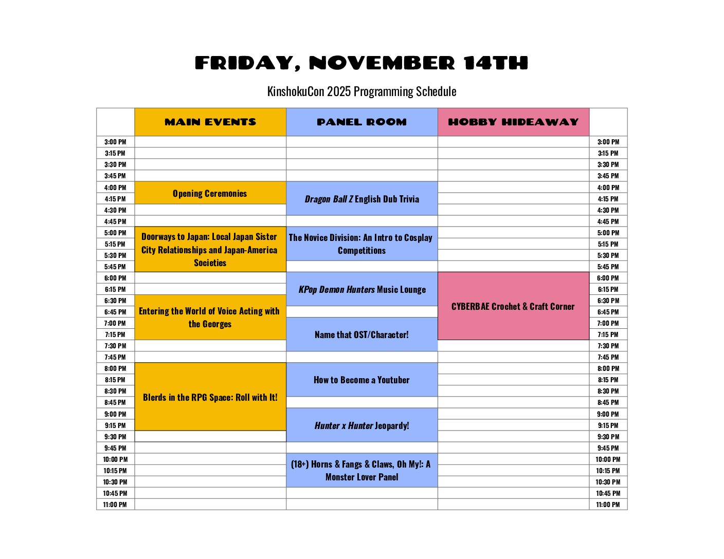 Click Here for Friday’s Programming Descriptions